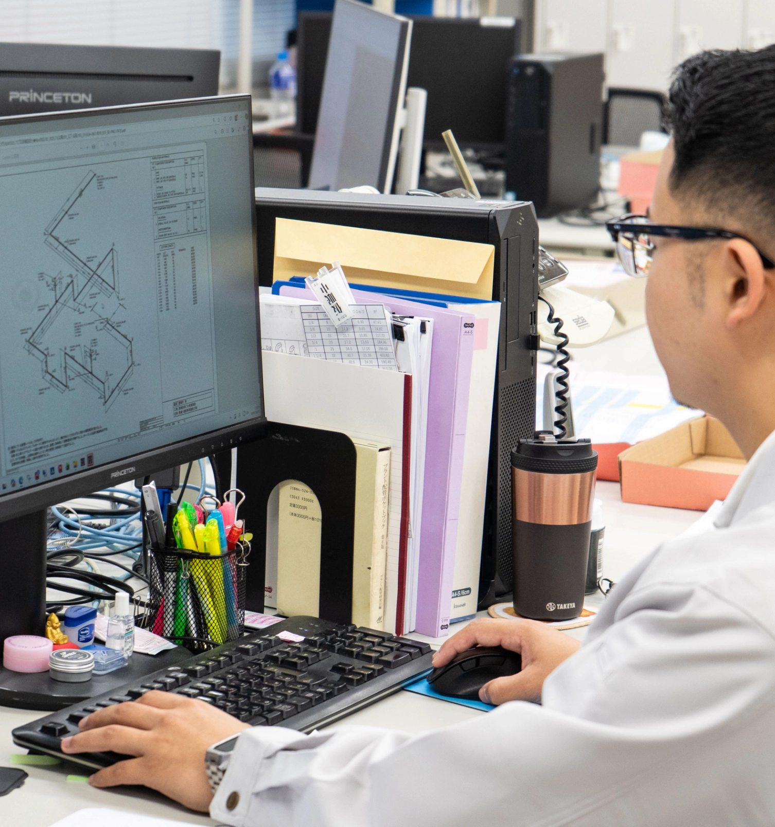 私が入社を決めた大きなきっかけは、実家から車で2分という立地の良さでした(笑)最初は「こんなに近いなら通いやすくていいな」という単純な理由でしたが、実はもう一つ“家族経営ではない会社である”というのも重要なポイントでした。私は機械工学部の機械コースを専攻しており、大学時代に設計などを学んでいたので、その知識を活かせる職場を探していたんです。